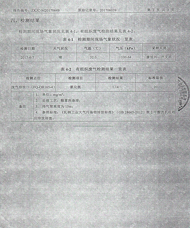 我們為每位客戶提供酸霧設備的專業氣體檢測,每個客戶的檢測結果都大大低于國家標準和地方標準。